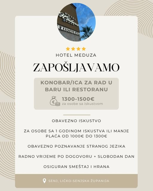 Hotel Meduza 4★ – Senj, Ličko-senjska županija zapošljava!