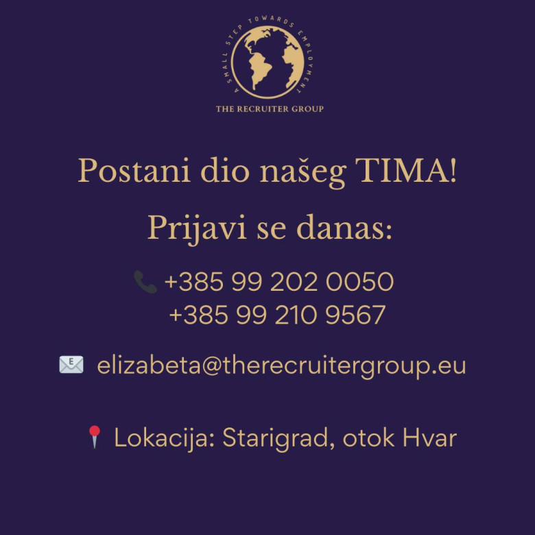 Sezona 2025. je pred vratima, a mi tražimo pojačanje za rad u vrhunskom hotelu u Starigradu na otoku Hvaru! ![]()