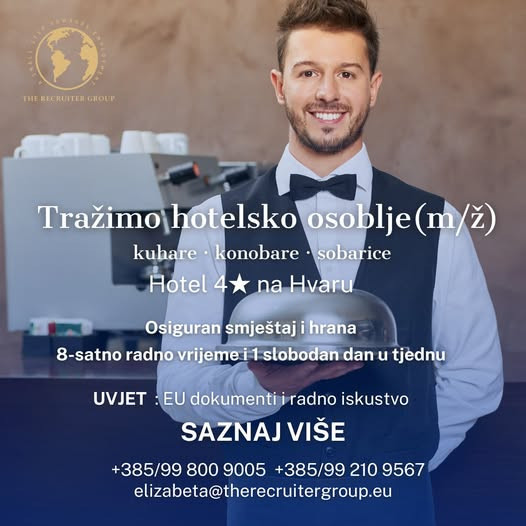SEZONSKI POSAO NA HVARU – PRIDRUŽI SE TIMU RENOMIRANOG HOTELA! ![]()