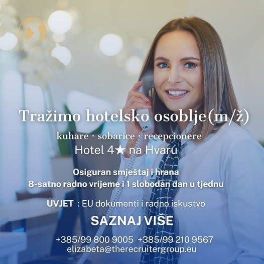 Tražimo motivirane i odgovorne osobe za sezonski rad u vrhunski opremljenom hotelu na otoku Hvaru!