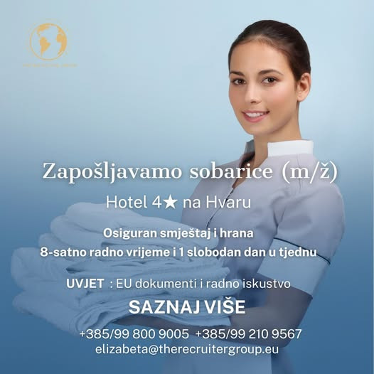 TRAŽE SE SOBARICE (m/ž) ZA RAD NA HVARU – SEZONA 2025 ![]()