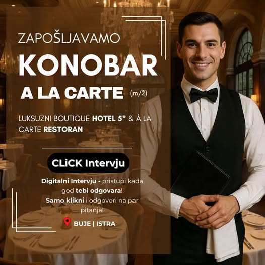📍Radno mjesto: Konobar a la carte (m/ž)