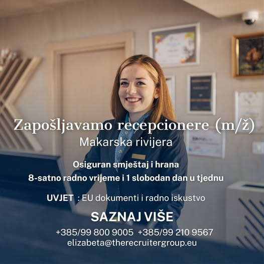 ZAPOŠLJAVAMO RECEPCIONERE (M/Ž) – HOTEL 4★ NA MAKARSKOJ RIVIJERI ![]()